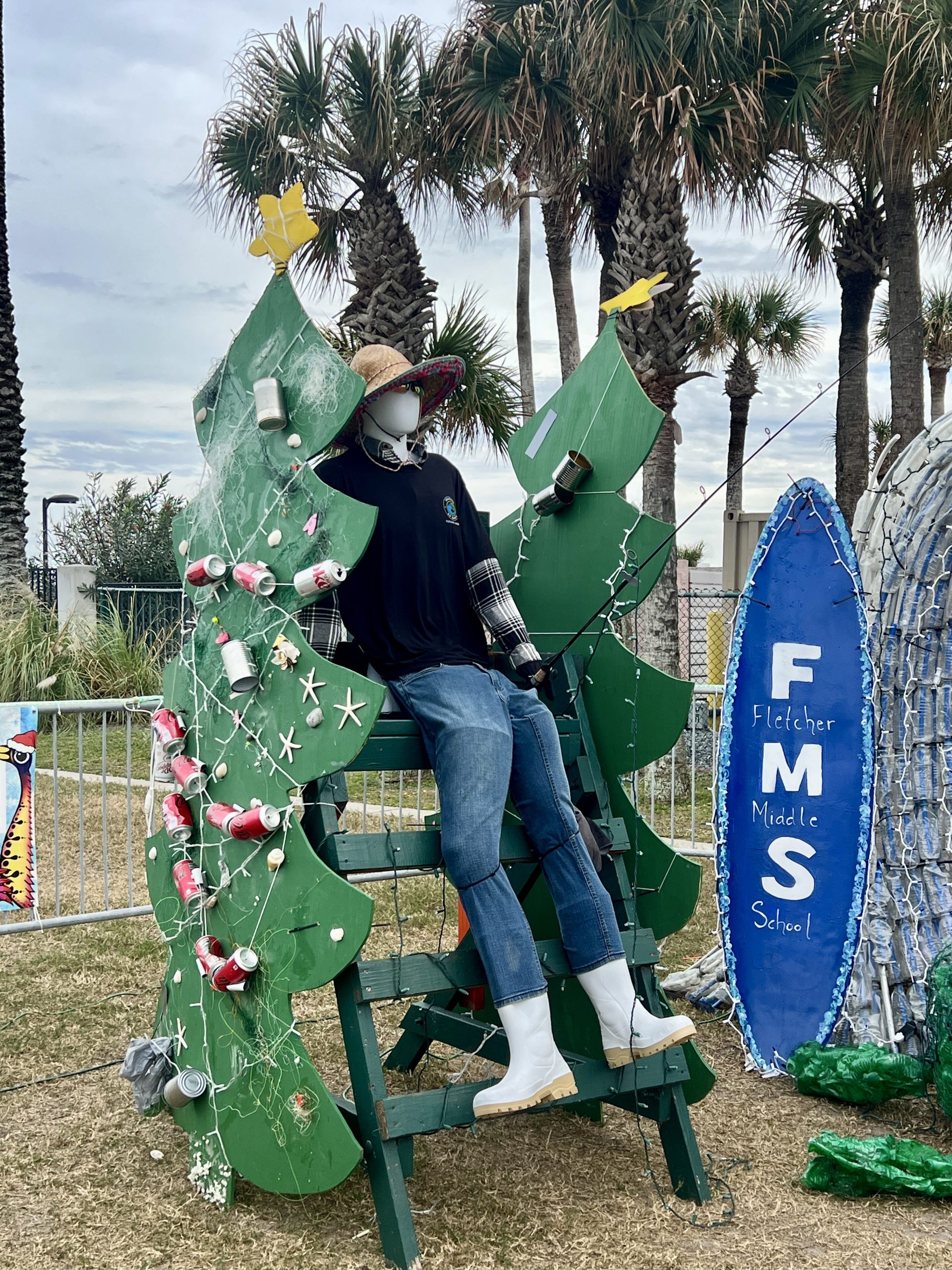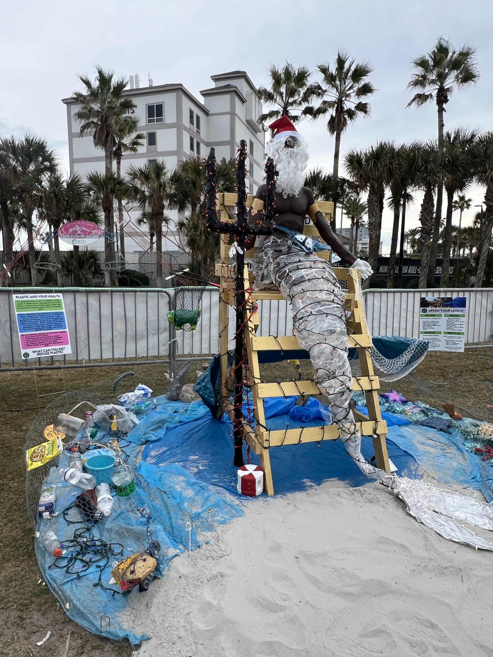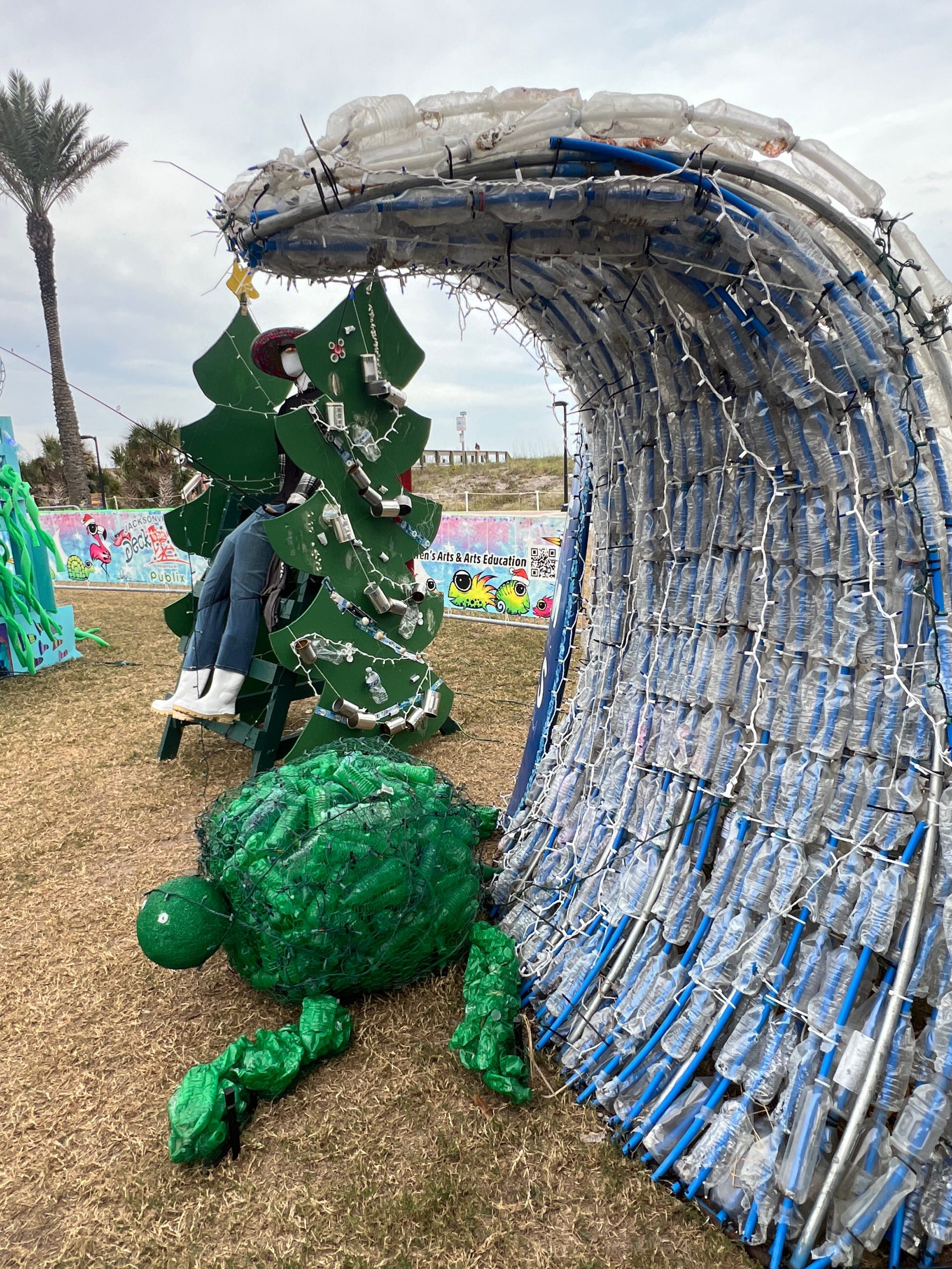 Beaches Go Green proudly served as a prominent exhibitor for five consecutive years at Deck The Chairs, the beloved annual holiday art event illuminating Jacksonville Beach, Florida, between Thanksgiving and New Year’s. Throughout our five-year run, our innovative, environmentally-focused displays consistently earned us multiple accolades from both the Deck The Chairs organization and the Cultural Center at Ponte Vedra. While our main exhibition run has concluded, our commitment to this event continues through our student clubs, which annually create and display their own unique art to inspire ongoing education and awareness.